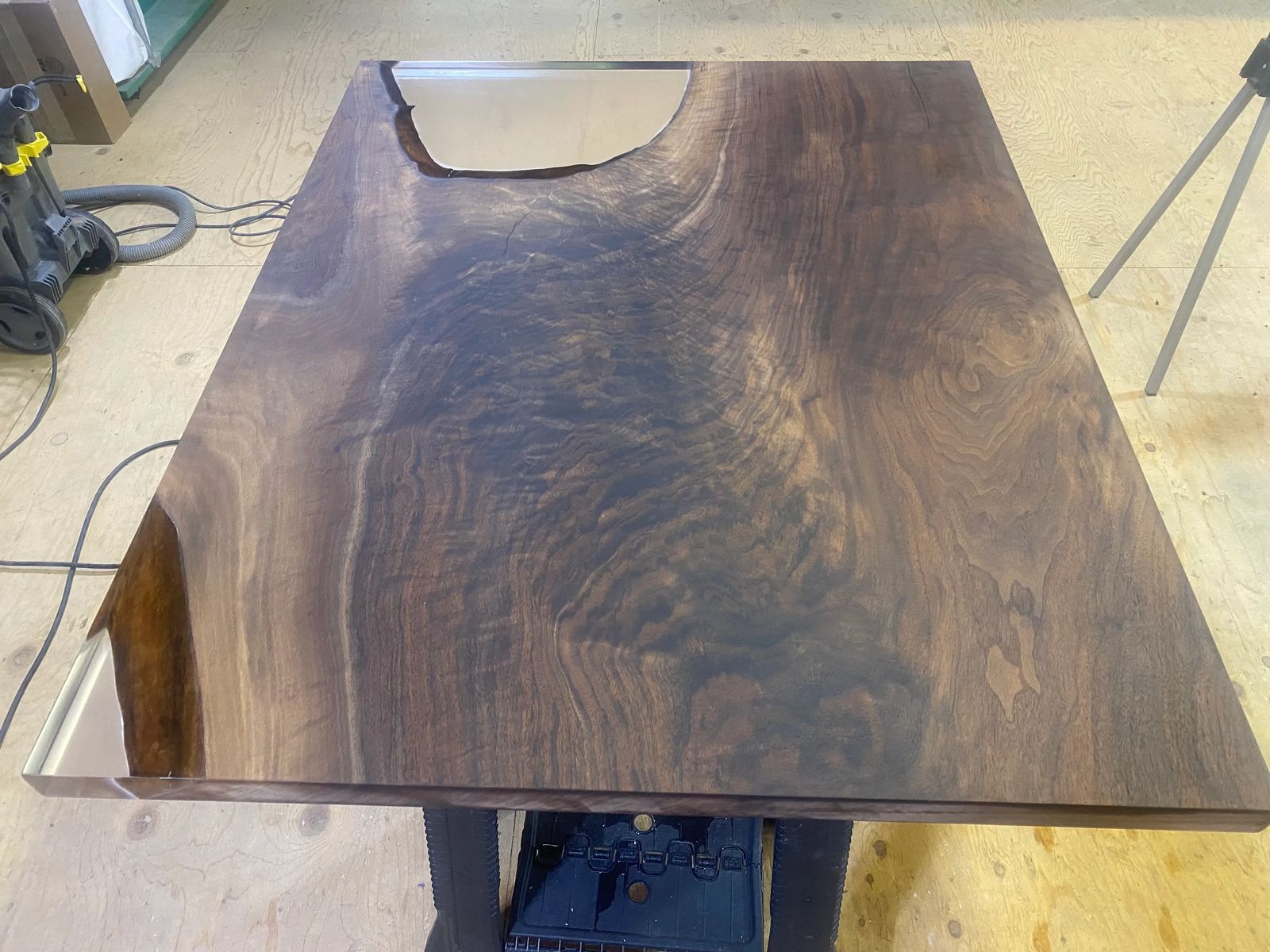 This piece balances refinement and restraint—natural material, preserved honestly, elevated through technique. The epoxy does not define the table; it simply allows the walnut’s story to remain visible.